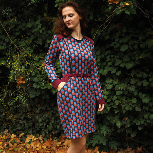 Es lässt sich super einfach nähen (trotz der vielen leinen Details). Da ich es aus Jersey nähe, habe ich mich für die Variante ohne Reißverschluss entschieden und den Rock etwas weiter ausgestellt